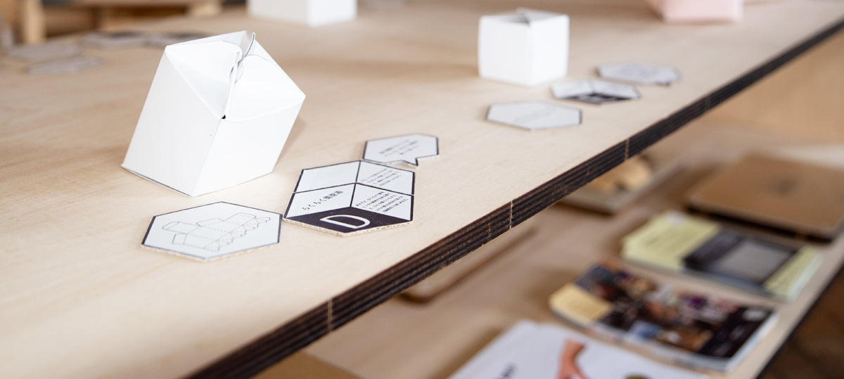 What a boxはこれまで私たちが蓄積してきた既存の「変わったカタチ、おもしろいカタチの箱」に特化してWEBサイトを通じて設計データを提供します。イメージする箱を任意の大きさにリサイズしたアウトラインのデータをお渡ししますので、あとは購入いただく方の想像力を生かしてグラフィックデザインを施したり、生産に活かしたりとご自由にご活用ください。